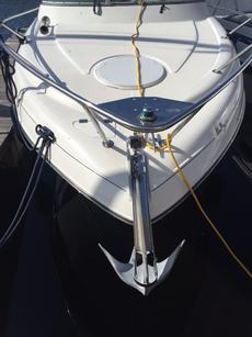 Stainless steel rails run around the foredeck and stainless steel cleats are fitted foward, centre & aft.
